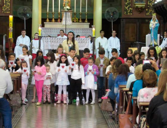 Todo primeiro sábado do mês temos missa especial explicativa para catequese. Missa das crianças é realizada todo domingo as 9:30.